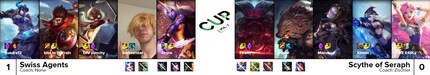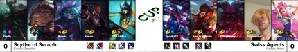 Show allTwice it looked good for Scythe of Seraph (SoS) at the beginning. They were slightly ahead in gold and kills in the first third of the game. In the end, however, the Swiss Agents didn't let anything go to waste. Caster Don Rigoni explains, among other things, the unconventional midlane pick of SoS: "Udyr is especially strong at the beginning of the game, but then flattens out. SoS should have put more pressure from the start." Punchy from Swiss Agents emphasizes his team's great experience in the winner's interview: "Since we play a scaling comp, we can almost only win in the lategame. Even if we are a bit behind at the beginning, we didn't get nervous and closed the bag."