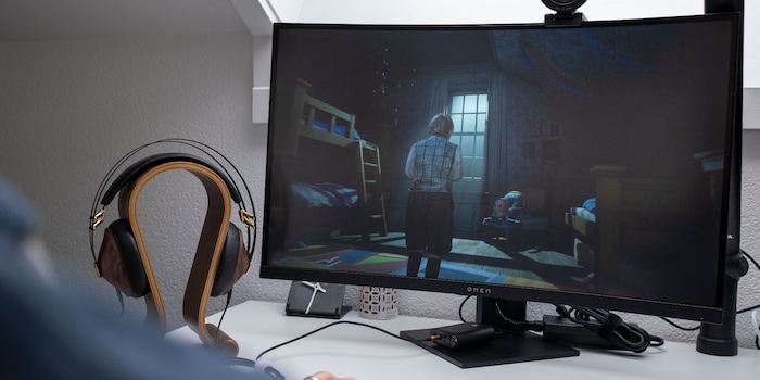 If you sit alone in front of the Omen 27c, it’s fantastic to work with thanks to the curvature. However, as soon as use it with two people or look from the side, the rather narrow viewing angles make for a less than optimal display.