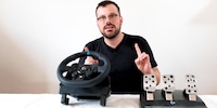 Otherwise, the Thrustmaster offers decent force feedback. Thanks to the steering wheel resistance, you can tell exactly whether you’re driving on asphalt, gravel or ice. You can increase or decrease the effect’s intensity directly on the wheel. During my «Gran Turismo 7» test laps, the feedback was sometimes a bit weak or delayed to me, partly also due to the game itself. There’s nothing to complain about for a steering wheel in this price range.