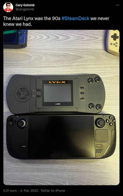 Cary Golomb pulled up numerous handhelds from the past few decades to compare them to Valve's new addition. The selection includes classics like the PSP, GameBoy Advance, Atari Lynx, GameGear, PS Vita, GameBoy Advance SP and many more. But also current representatives like the Nintendo Switch are included. We have included the YouTuber's pictures for you below.