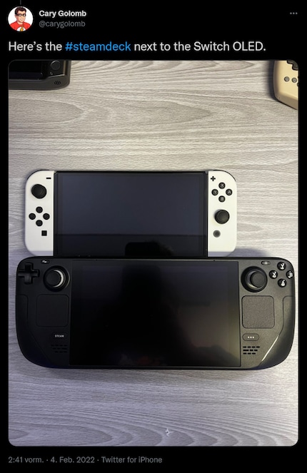 Show allValve has sent out initial copies of the Steam Deck to media outlets and content creators from around the world. Among them is YouTuber Cary Golomb, who posted some comparison images on Twitter that illustrate the size of Valve's handheld. Among other things, the Steam Deck even surpasses the size of Nintendo's clunky Wii U controller.