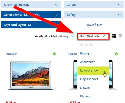 Now you’ve got the results, you can compare the recommended devices in detail. From here it’s best to select «Sort: Lowest price» to get a clear view of the options.