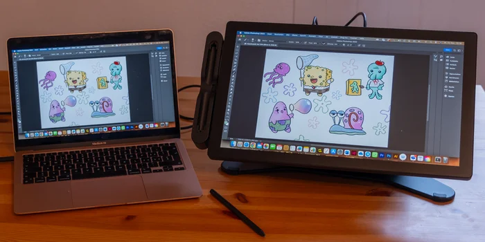 And XP-Pen's Artist Pro 16, which includes a separate remote control for shortcuts. I tested the latter in the 14-inch version and find it excellent value for money. AdobeRGB colour space coverage here is 97% and for DCI-P3 it's 99%. And I found it smoother to use with the MacBook Air.