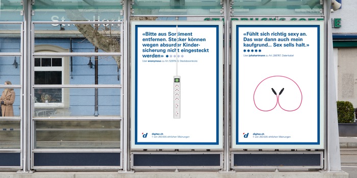 This ad campaign will be on display both in the French- and German-speaking part of Switzerland starting today until 16 December. We’ve picked out a few gems from around 260,000 product ratings and will be presenting them via various online channels, on TV as well as on billboards and cardboard displays.