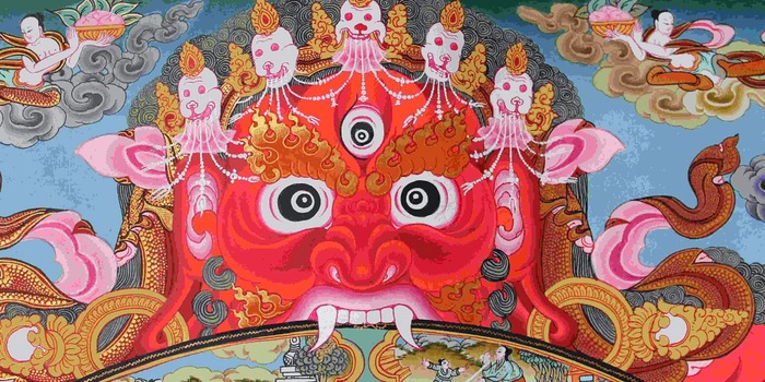 A little note: The terrifying comrade in the main image on this page is Yama, Buddhist god of death. He always appears when a life turns into death. He symbolises the transience of all existence. He rules over the hells and has its origins in Hinduism, but was adopted by the Buddhists. <p