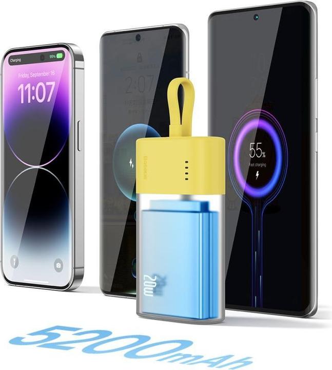 The Baseus Popsicle 5200mAh 20W Power Bank is an innovative and practical solution for anyone who relies on reliable energy while on the go. With a capacity of 5200mAh, this power bank provides sufficient power to efficiently charge your devices. The integrated Lightning cable allows for hassle-free charging without the need to carry extra cables. Its modern, semi-transparent design in appealing color gradients gives the power bank a stylish look that is perfect for summer. The compact construction makes it an ideal companion for travel, outings, or everyday use. Additionally, the power bank comes with an extra USB-C to USB-C cable that supports a maximum output of 60W, making it a comprehensive solution for your charging needs.