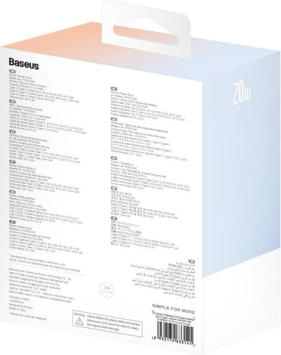 The Baseus Popsicle 5200mAh 20W Power Bank is an innovative and stylish solution for anyone who relies on reliable energy while on the go. With its modern, semi-transparent casing featuring appealing color gradients, this power bank offers not only functionality but also an attractive design. The integrated Lightning cable function allows for convenient charging of devices without the need to carry extra cables. With a capacity of 5200mAh and a maximum output power of 20W, this power bank can efficiently charge various devices. Its compact design makes it the ideal companion for travel or everyday use. Additionally, a USB-C to USB-C cable is included, providing a comprehensive solution for your charging needs. The Baseus Popsicle Power Bank is therefore a practical and stylish choice for those who value design and functionality.