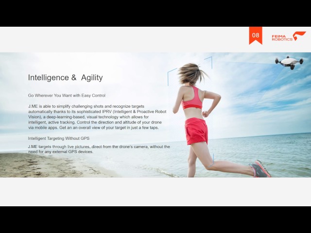 Equipped with an intelligent and interactive flight control system (IIFC), it guarantees you a seamless flying experience with the utmost control precision. The J.ME includes the following technologies: Optical Flow, intelligent anti-collision system, GPS, IMU, magnetometer, barometer, high-performance CPU (64-bit at 2.6 GHz), and GPU.