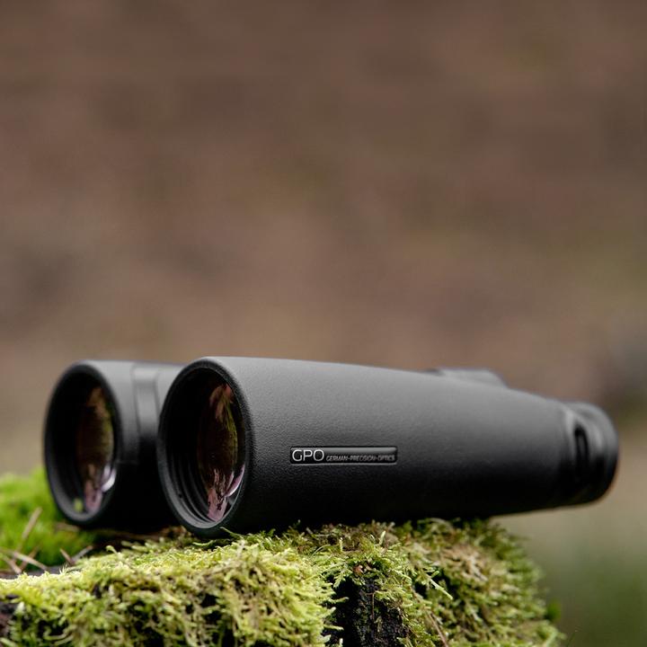 The Passion HD 8.5x50 binoculars represent the absolute premium class from GPO. HD optical design combined with the latest multi-layer coatings creates optical excellence in transmission, field of view, edge sharpness, close focus, and color reproduction. Thanks to the water-repellent PASSIONdrop coating, all optics are dirt and water-resistant. The innovative micro bridge offers high quality and a very ergonomic design. The magnesium housing, the coated magnesium bridge, and the aluminum twist-up eyecups provide maximum robustness with minimal weight. The diopter adjustment has been integrated into the central focusing wheel to ensure comfortable handling.
