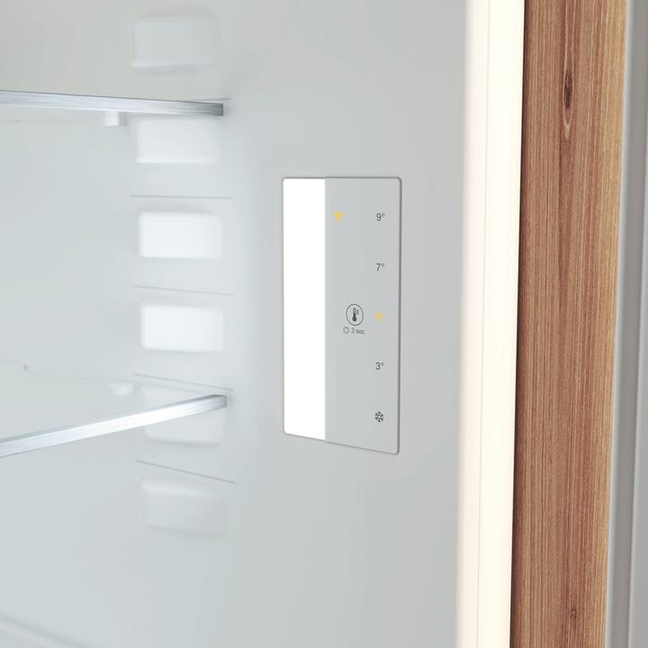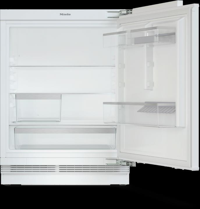 The Miele KU 7015 D is an under-counter refrigerator that stands out for its compact design and integrated LED lighting. With a total volume of 127 liters, it offers ample space for food storage. The divided door shelves allow for flexible arrangement of products, while the refrigerator, which does not have a freezer compartment, ensures optimal cooling for fresh foods. The maximum noise level of 34 decibels ensures quiet operation, making it ideal for use in living spaces. The refrigerator is fully integrable and seamlessly fits into your kitchen environment.