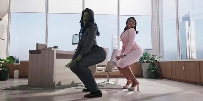 De plus, She-Hulk se heurte toujours plus à un autre problème narratif : comment Jennifer Walters peut-elle paraître forte, sûre d'elle et intelligente quand tous les autres hommes personnages dans la pièce se comportent comme une bande d'étudiants pubères ? Jennifer manque de personnages autour d’elle qui puissent vraiment lui faire de la concurrence. Jessica Gao s'en moque. Pire encore, elle se moque d'eux. Par exemple, lorsque l'ancien collègue de Jennifer, qui n'est certainement pas un Chris Hemsworth charismatique, s'imagine qu'il pourrait avoir une réelle chance avec la rappeuse américaine et superstar Megan Thee Stallion. Si on lit entre les lignes, on comprend « tous les hommes sont comme ça, ils se surestiment toujours et ce énormément ». Les bombes comme She-Hulk et Megan Thee Stallion s’en moquent et les spectateurs sont censés en rire avec elles.