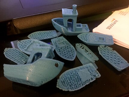 Nous avons récemment (enfin, lui, mais il m'assure que tout cela est absolument nécessaire) acheté tout un tas de filaments de différentes couleurs, des rubans adhésifs, des sprays anti-dérapages et des outils de mesure et de bricolage, et nous avons commencé à imprimer en masse. Dans les derniers temps, j'ai l'impression de le voir continuellement contrôler le processus d'impression et s'occuper de réaliser des impressions de calibration pour tester et vérifier différents réglages d'impression. Entre temps, il a aussi commencé à imprimer des trucs pour améliorer l'imprimante elle-même et donc régler des problèmes que nous n'aurions pas eus à l'origine.