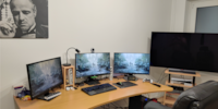 En regardant mon poste de travail, vous remarquerez probablement en premier lieu que les deux écrans 24 pouces sont à des hauteurs différentes. J’en ai vraiment honte. Les deux moniteurs ont leur support VESA à des hauteurs différentes. Je les ai fixés à un support d’écran avec bras pour deux moniteurs dont il n’est pas possible de régler la hauteur individuellement. Ce n’est pas idéal, mais j’ai fini par m’y habituer avec le temps.