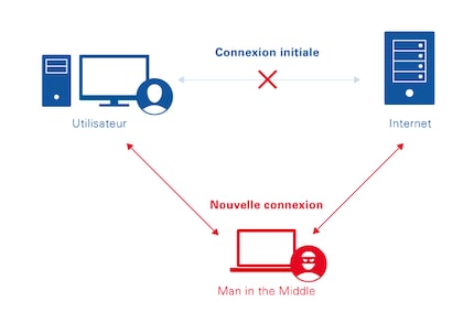 Dans une attaque Man in the Middle, le trafic de l’utilisateur à l’hôte passe par des tiers où ils sont lus.Comme Christian Margadant et son équipe ne peuvent pas accéder au site sur le Darknet, le Head of Technics émet deux hypothèses: