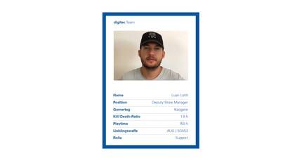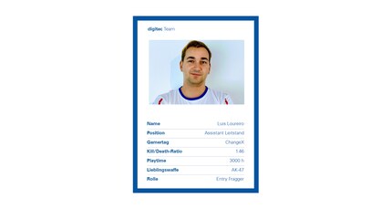 Luis est le capitaine de l'équipe et travaille au centre de contrôle logistique de Wohlen. "CS:GO" est depuis longtemps l'un des jeux de tir préférés de Luis. Il a même créé sa propre équipe et a joué pendant cinq ans avec les mêmes joueurs.