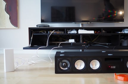 Passons au test final. Jusqu’à maintenant, nous avons laissé le routeur libre dans le salon. Mais comme Özhan et sa femme préfèrent le voir dissimulé, il faut lui trouver une place au fin fond du meuble TV – couvert avec plusieurs écouteurs. Au moins, le couvercle se compose partiellement de tissu pour ne pas bloquer la barre de son située derrière. Nous contrôlons encore une foi un satellite après l’autre. L’appareil dans la cuisine et celui sous le lit brillent jaune. Cela signifie qu’ils sont trop loin de la station d’accueil. Cette alerte n’est, cependant, qu’un avertissement. Dans notre cas, les appareils fonctionnent encore et la réception n’est pas forcément devenue plus mauvaise. Nous pouvons nous détendre.