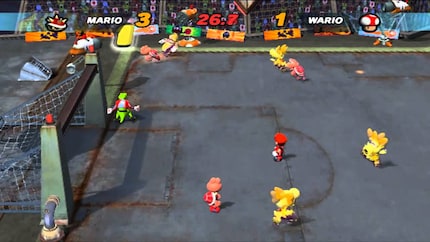 "Mario Smash Football", sorti en 2005 sur Nintendo Gamecube, est un mélange de "Smash Bros" et de football. Le jeu se joue à cinq contre cinq. Vous ne trouverez pas d'arbitre. Il serait d'ailleurs complètement dépassé par le chaos qui règne sur le terrain. Ici, vous n'avez pas besoin de tirer le frein d'urgence si l'adversaire se précipite seul vers votre but. Il est tout à fait légitime de lui envoyer une carapace de tortue rouge ou, mieux encore, de placer tactiquement une série de bananes avant. Bien sûr, il y a aussi des super tirs et de nombreuses attaques spéciales pour que même le dernier d'entre vous perde le fil dans cette folle mêlée.