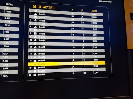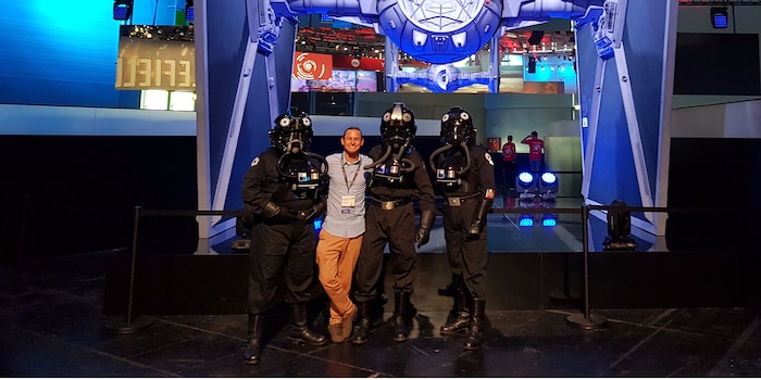 «S’il vous plaît, ne prenez pas de photo ou de vidéo de la nouvelle bande-annonce». Nous suivons donc ces directives et mettons les écouteurs. Après la bande-annonce, nous avons encore la chance de pouvoir jouer à Battlefront II. On dirait bien que tous les membres de l’équipe adverse ont appris la première version du jeu par cœur et la mettent même directement en application dans le nouveau volet. Nous perdons, même après avoir tout donné avec mon ratio kill/death 1:1. En tout cas, cela suffit pour prendre une photo avec les Shadow Trooper.
