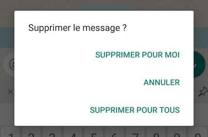 Si vous ne le faites pas et cliquez, par inadvertance, sur «Supprimer pour moi», c’est fini. Le message n’est certes plus sur votre téléphone, mais toujours visible sur le téléphone du destinataire. Même si vous avez encore assez de temps, vous ne pouvez plus supprimer le message pour tout le monde.