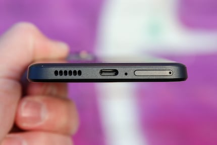 Je suis moins satisfait de la face avant : l'écran OLED de 6,7 pouces avec 2400 × 1080 pixels et 120 hertz est certes à la pointe de la technologie, mais pas très agréable à regarder. Cela est dû au cadre. Il est plus large en haut et en bas que sur les côtés longs. Cela perturbe mon besoin de symétrie. De plus, la ligne d'information avec l'heure et le niveau de la batterie me semble trop proche des coins arrondis en haut de l'écran.