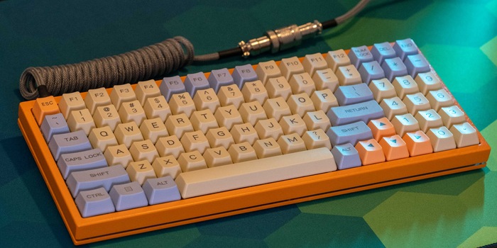 Switches nicht luben, Stabilisatoren nicht modden und das Weglassen von Dämmmaterial waren meine grossen Verfehlungen bei meinem ersten Tastatur-Build. Damals hatte ich auch nicht wirklich ein Konzept in Sachen Farbe und Gesamterscheinung. Da ich auch die Keycaps tausche, entschliesse ich mich dazu, das Gehäuse zu sprühen. Bei den Keycaps setze ich auf Retro-Look mit beige, hellblau und orange – oder wie’s Kollege Phil ausrückt: vergilbt. Da nur wenige der Caps orange sind, entschliesse ich mich dazu, das Gehäuse pastellorange zu sprühen.