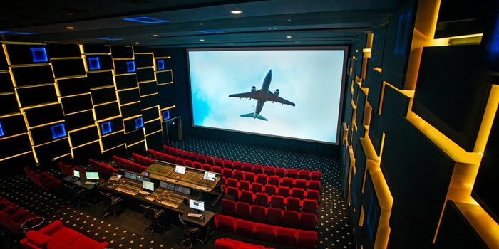 La configuration 11.1 dans les cinémas a le même agencement que la configuration 10.1. Cependant, elle est complétée par une enceinte en hauteur supplémentaire placée au-dessus de l'enceinte centrale.