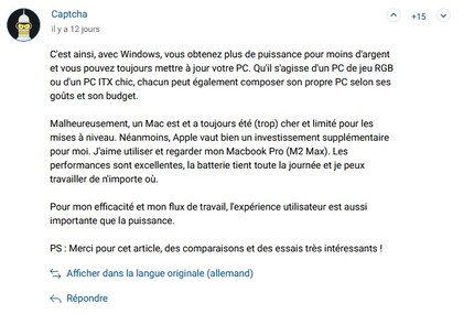 Tout afficherL’ordinateur A étant un PC et l’ordinateur B un Mac, les émotions ont pris le dessus pour certains. L’aile extérieure d’une faction a décelé une propagande anti-PC malveillante, les ultras de l’autre camp ont soupçonné une conspiration anti-Mac. Certains commentaires étaient empreints d’indignation : comment oser comparer un Mac à un PC ! Les pôles extrêmes ont à peine remarqué que l’article faisait l’éloge des avantages de leur système favori. Ils ont vu rouge lorsque j’ai mentionné des inconvénients.
