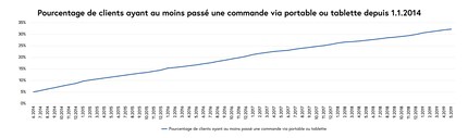 Le téléphone portable et la tablette représentent, pour une large couche de la population, le moyen principal ou secondaire d'effectuer des emplettes. Depuis 2014, un tiers des clients de Digitec Galaxus ont commandé au moins une fois avec un appareil mobile. Il ne s'agit donc pas (plus) d'un phénomène marginal réservé à quelques « utilisateurs invétérés » qui achètent particulièrement souvent sur Internet, mais plutôt d'un mode de consommation devenu monnaie courante.