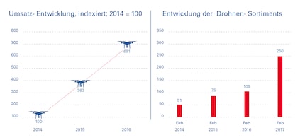 Les drones télécommandés ont touché le marché de masse. En 2016, nous avons vendu presque sept fois plus de drones qu’en 2014. Parmi les acheteurs, de plus en plus de femmes et de jeunes.