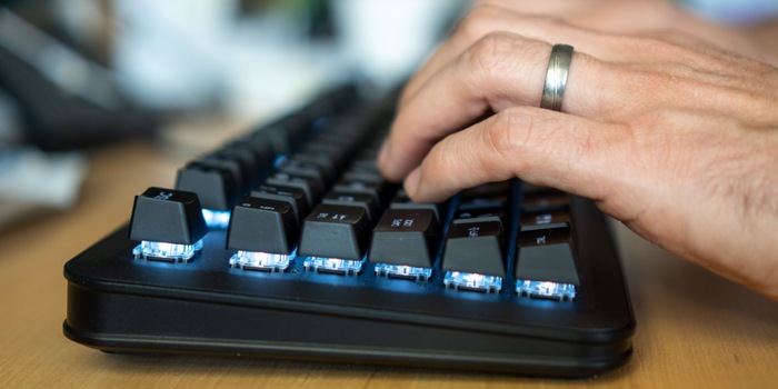 Après avoir jeté le repose-poignets dans un coin, je peux à nouveau me concentrer sur la frappe. Ma première impression en mode Clicky : pas mal du tout. Mais il y a quelque chose de différent par rapport aux touches Clicky traditionnelles. Je n'y arrive pas. Je demande à mon collègue Simon Balissat, un autre aficionado des claviers. Après quelques essais, il me dit qu'il ne sent pas exactement quand la touche est activée. Je sais maintenant ce qui me dérange : juste avant le déclenchement, je dois appuyer plus fort. Avec les Cherry MX Blue ou les Clicky Optical Switches de Razer, j'ai l'habitude d'appuyer avec la même force avant et après le point de déclenchement. Mais après un court laps de temps, je suis à l'aise avec les commutateurs 2 en 1 de Darfon. Néanmoins, je préfère la sensation de frappe des autres commutateurs Clicky.