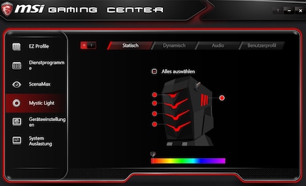 Réglages Mystic Light dans le MSI Gaming Center.