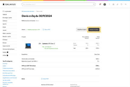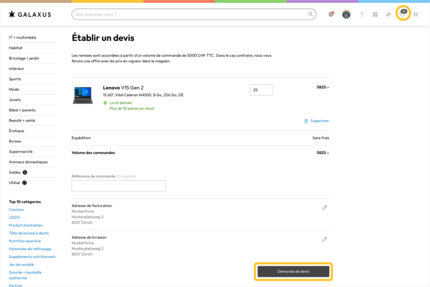Jusqu’à présent, les entreprises de Galaxus et Digitec ne pouvaient demander des devis que par e-mail – un processus manuel et long. Fini les documents Excel interminables, les captures d’écran du panier et l’échange fastidieux d’e-mails. Nous proposons désormais aux entreprises une nouvelle solution intelligente via la boutique en ligne.