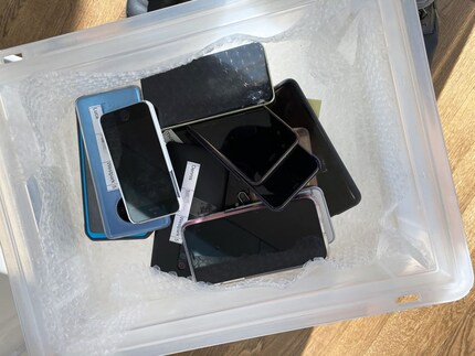 Aux 47 téléphones portables avec carte SIM, nous ajoutons encore sept téléphones portables sans SIM que nous avons à portée de main. Cela fait 54 smartphones.