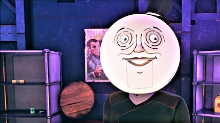 Le premier moment où le jeu me fait penser au soap opera spatial Mass Effect, c'est lorsque je pénètre dans Groundbreaker. Une station spatiale grouillante avec des enseignes lumineuses colorées et des vaisseaux spatiaux gigantesques qui glissent majestueusement devant la verrière. À chaque coin de rue, vous rencontrez des personnes étranges. Comme l'épicier Moon Man, qui porte un masque lunaire géant qu'il n'a apparemment jamais le droit d'enlever et que je dois absolument avoir. Ce qu'il ne peut pas non plus faire, c'est s'éloigner des slogans stricts de son entreprise. Quelle que soit la profondeur de vos recherches, il trouvera toujours un moyen de faire de la publicité pour le groupe - à moins que vous ne creusiez vraiment, vraiment profondément.