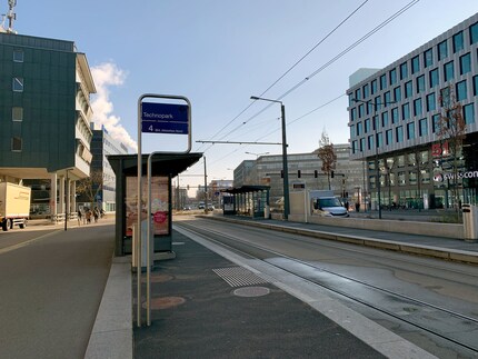 Nous cherchons d’abord un lieu que nous identifierons avec le même type d’indices que ceux exploités par Sato Hibiki. Par pragmatisme, notre choix se porte sur la station de tram Technopark à Zurich.