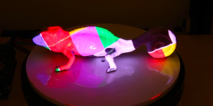 Ça ressemble à de la science-fiction, mais c'est en fait tout simplement de la science. Des encres photochromiques de couleurs cyan, magenta et jaune (CMY) ont été mélangées par l'équipe de chercheurs pour former une solution pulvérisable. Chaque couleur réagit différemment aux différentes sources de lumière ou longueurs d'onde : La lumière bleue est absorbée par la couleur jaune et ainsi désactivée, ne laissant que le cyan et le magenta, ce qui donne le bleu selon la théorie des couleurs. Si vous n'avez plus envie de faire votre design, vous utilisez la lumière UV pour tout "effacer". Pour le processus de coloration, l'objet est placé dans une boîte avec un projecteur et une lumière UV. Le motif est appliqué sur un modèle numérique en 3D et transféré sur l'objet réel à l'aide du projecteur .