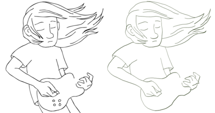 Si les 8192 niveaux de sensibilité à la pression et la détection d'inclinaison de l'Intuos Pro étaient utilisés, ce serait révolutionnaire. Malheureusement, ce n'est pas le cas. Les lignes de mon dessin original avec le stylet étaient très uniformes et semblent un peu maladroites à mon œil averti. Je peux faire mieux.