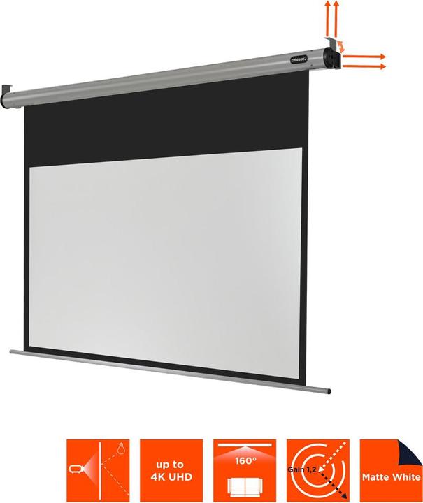 Celexon Écran de cinéma maison motorisé 16:9 180x102cm, toile, électrique, blanc mat, boîtier gris, grand angle de vision avec un facteur de gain de 1,2, adapté pour un montage mural et au plafond.