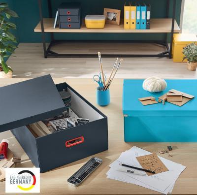 Organisez vos affaires de manière ordonnée et sécurisée avec ces attrayantes boîtes de rangement et de transport Leitz Click & Store Cosy. Ces boîtes de rangement A3 pliables avec couvercle sont idéales pour conserver des documents, des plans, des dessins techniques, des graphiques, des classeurs, des dossiers, des catalogues, des photos, des livres, des documents de révision, des certificats et d'autres petites choses. Cette boîte de rangement pliable de grande qualité est parfaite pour les documents, les dossiers et autres accessoires au format A3, et elle est idéale pour le stockage et le transport de matériel informatique à domicile, comme un ordinateur portable ou un clavier. La boîte est dotée d'un couvercle amovible pour garder le contenu en sécurité et peut être entièrement repliée lorsqu'elle n'est pas utilisée. Fabriquée en carton de haute qualité pour une durabilité accrue, elle possède une surface PP satinée et lavable, ainsi qu'une construction brevetée qui empêche l'ouverture de la boîte lorsqu'elle est remplie d'objets lourds. Les boîtes de rangement se montent facilement et rapidement grâce aux boutons-pression et sont confortables à soulever et à transporter grâce aux découpes rouges élégantes. Contenu de la livraison : 1 x boîte de rangement et de transport Leitz Click & Store A3, dimensions (L x H x P) : 369 x 200 x 482 mm, 1280 g, jaune chaud, série Cosy, emballage en carton. Emballage sans plastique. La construction brevetée empêche l'ouverture de la boîte lorsqu'elle est remplie d'objets lourds.