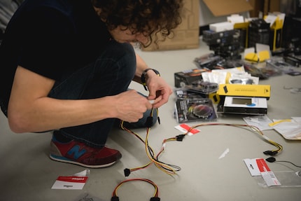 Con tutta la roba che avevo ordinato non riuscivo a non preoccuparmi che la scheda madre non reggesse, che il circuito friggesse dopo il terzo accoppiamento o che il materiale che avevo ordinato non fosse sufficiente. I giorni passavano e il termine di consegna della foto per la prima pagina del nostro prospetto si avvicinava. Ho dovuto effettuare ben quattro ordini dopo il primo perché c’era sempre qualche pezzo che mancava. In pratica siamo riusciti ad avere tutto ciò che ci serviva l’ultimo giorno: un albero, le illuminazioni, una stanza libera in cui assemblare il tutto, il nostro fotografo Thomas Kunz e io. Ho ricevuto il grande sostegno di Sven Mathis, grafico, e di Raphi Knecht, che è anche il team leader del reparto editoriale e grandissimo appassionato di hardware.