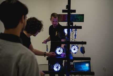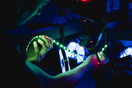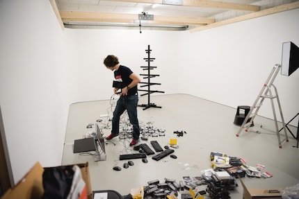 Con 100 fascette nere per cavi alla mano abbiamo fissato alla struttura 12 ventole, 8 mouse, 5 tastiere e 12 strisce LED e abbiamo connesso il tutto con vari adattatori e cavi colorati. Devo dire che lo spettacolo di luce è stato fenomenale e già in quel momento abbiamo capito che ne era valsa la pena. Come tocco finale avevamo pianificato di aggiungere una scia di luce, creata facendo volare un drone ed esponendolo a lungo alla fotocamera. Ma, dopo un breve test, il nostro pilota e produttore video Manuel Wenk ha deciso che non era il caso: troppo pericoloso. Abbiamo provato a muovere il drone con un filo, ma non abbiamo ottenuto il risultato sperato e perciò ci siamo accontentati di ciò che avevamo. Anche così, il nostro albero di Natale da nerd è un vero gioiello. E costerebbe circa 2500 franchi, senza PC. Ma ti garantisco che Babbo Natale diventerebbe verde di invidia.