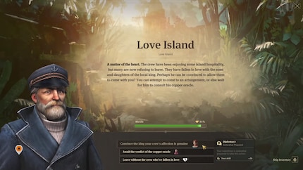 Una particolarità sono le spedizioni. Puoi inviare le tue navi in viaggi avventurosi. Le decisioni devono essere prese a intervalli regolari e le loro possibilità di successo dipendono dal morale dell'equipaggio, dalla nave selezionata e dagli oggetti a disposizione. Una volta il mio equipaggio si è imbattuto in una piovra gigante. Grazie al mio leggendario cannone, ho avuto un bonus. Ma anche con quello, la piovra è riuscita ad avvolgerci nei suoi tentacoli. Solo il tiro decisivo successivo ha avuto successo quando ho deciso di abbattere i tentacoli con le asce. Alla fine della spedizione ho ricevuto alcuni nuovi animali esotici per il mio zoo come ricompensa.