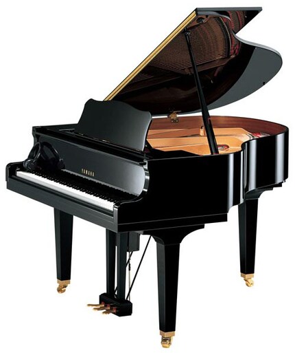 Ci fermiamo davanti a un pianoforte a coda Yamaha