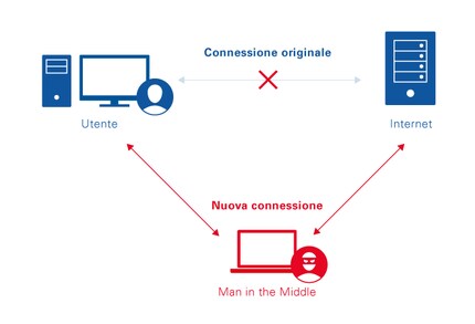 Da questa lista di banche possiamo dedurre che i Phisher vogliano colpire clienti bancari svizzeri e austriaci. Ciò significa che gli aggressori sanno esattamente chi vogliono affrontare. Questo script poteva essere divulgato solo in Svizzera e in Ausrtria, poiché sarebbe totalmente inefficace per i clienti bancari di altri paesi. Ma ai clienti bancari svizzeri e austriaci succede questo: quando accedete al vostro sistema E-Banking, qualcun altro può leggere i vostri trasferimenti. Si tratta dunque di un classico attacco Man in the Middle.
