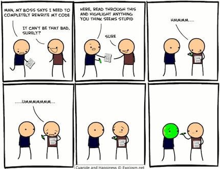 Tieni presente che una CAT è più di una semplice revisione del codice. Il codice può essere ben strutturato e comprensibile. Se i criteri di accettazione non sono soddisfatti, la storia non è completa. Non vedere le CAT come una tortura, ma come una sfida. Come revisore, imparerai a conoscere meglio le altre storie e potrai integrare le tue conoscenze. Come destinatario della revisione, verrai a conoscenza di problemi e opportunità di miglioramento che ti renderanno uno sviluppatore migliore!