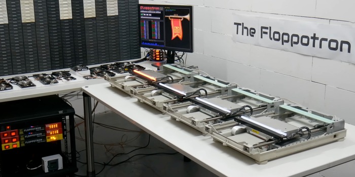 L'inventore del Floppotron si è aggiornato. 512 unità floppy, 16 dischi rigidi e 4 scanner si uniscono per formare una complessa orchestra di nerd.
