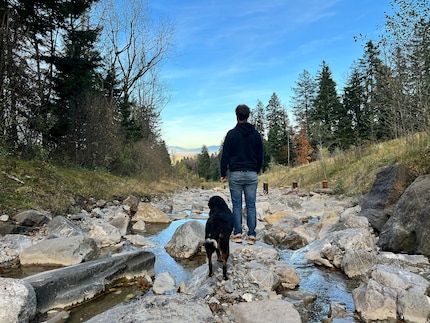 Per dimostrare come funziona la gomma magica, prendiamo questa foto di un uomo con un cane: