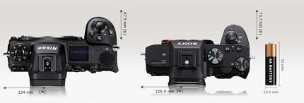 La Sony A7 III è un po' più compatta della Nikon Z7, ma non ha il display in alto.