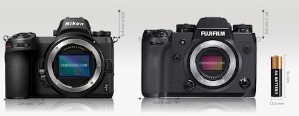 La Nikon Z7 ha le stesse dimensioni della Fujifilm X-H1, ma è una fotocamera full-frame. Puoi vedere chiaramente il piccolo sensore sul lato destro della Fujifilm.