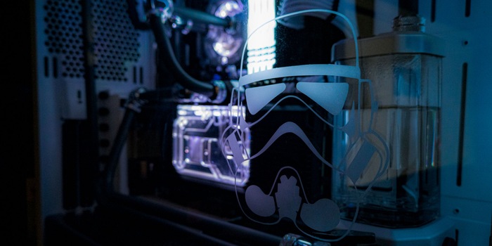 Invece di un po' di kitsch, come una scritta o qualcosa di simile, ho scelto un casco da Stormtrooper. Se deve essere kitsch, deve essere davvero kitsch. Questo si adatta al tema del mio case per PC: visto di lato, il Meshify S2 di Fractal Design assomiglia un po' a un casco da Stormtrooper. Ho scelto il seguente modello: